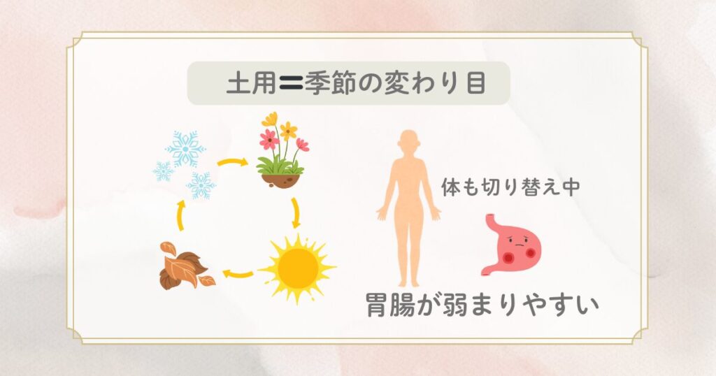 土用は季節と季節の間にある切り替えの期間です。季節が変わるように、体も次の季節へ向かって準備をしています。そのため、土用は元気な人でも調子を崩しやすい時期です。